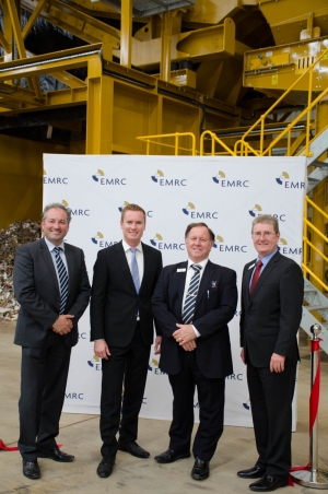 Photo 1 (L-R) Mr Marcus Geisler, Waste Authority Chairman; Hon. Albert Jacob MLA, Minister for Environment; Heritage; Cr David Fardig, EMRC Chairman; and Mr Peter Schneider, EMRC CEO at the launch of the Commercial and Industrial Waste Sorting Facility