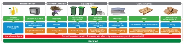 Resource recovery seeks to complement these existing waste management solutions by dealing with the waste left over in rubbish bins and vergeside after residents have reduced, re-used and recycled their waste.